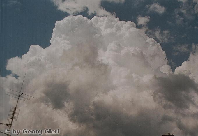 Cumuluswolken bei Erlenmoos als Vorboten einer aufziehenden Regenfront .