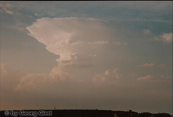 Die selbe Gewitterzelle vom 10.06.etwa 10 Minuten später. Man sieht deutlich dass der Eisschirm sich weiter in der Breite ausgedehnt hat.